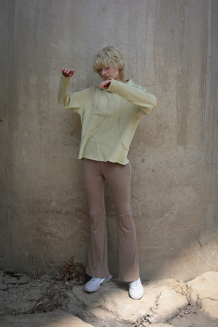 곡선이 타고 흐르는 니트 팬츠입니다.