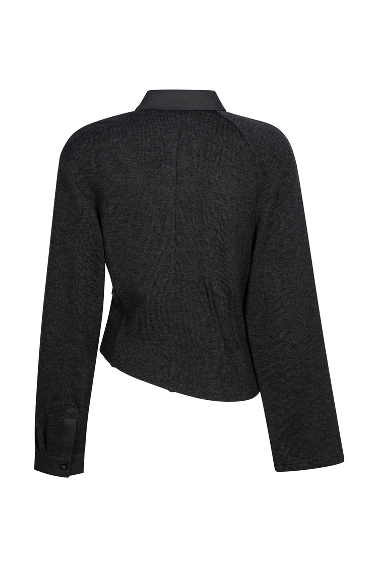 Wool Knit Twist Cardigan - Charcoal